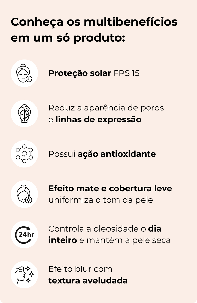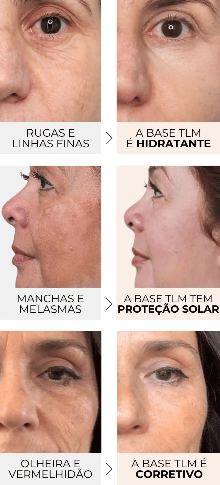 Com função hidratante, protetor solar, corretivo e base, ela resolve rugas, manchas, olheiras e vermelhidão, tudo em um só produto!