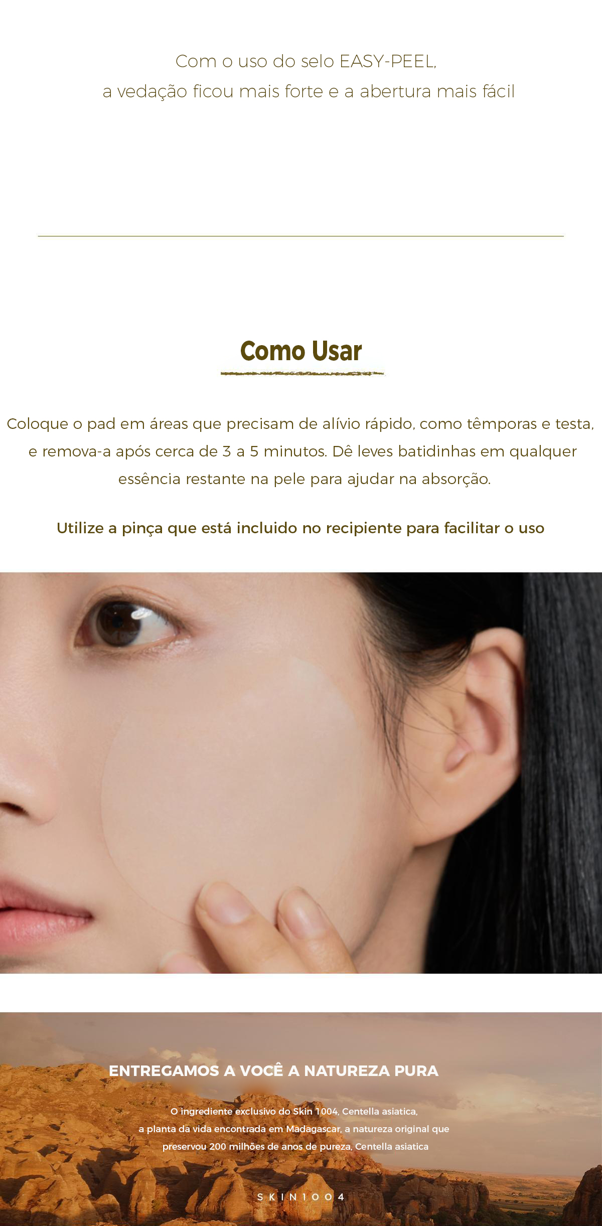 Coloque sobre as bochechas, a testa, ou em áreas que necessitam de um alívio rápido, e retire após cerca de 3 a 5 minutos, aplicando suavemente o produto restante na pele até que seja absorvida.